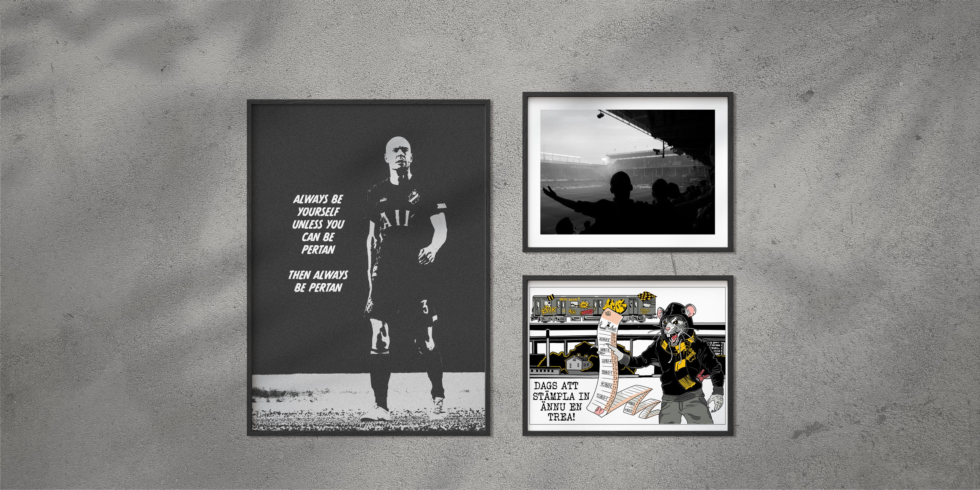 Supporterart.com er den ultimative plakatside for alle passionerede tilhængere af et hold. For dem, der ønsker stilfulde plakater af høj kvalitet med fotokunst af deres yndlingshold. Vi er stolte af at kunne tilbyde en bred vifte af plakater med motiver til AIK, Djurgården, Hammarby, Liverpool, Malmö FF, IFK Göteborg, Arsenal og AC Milan.
